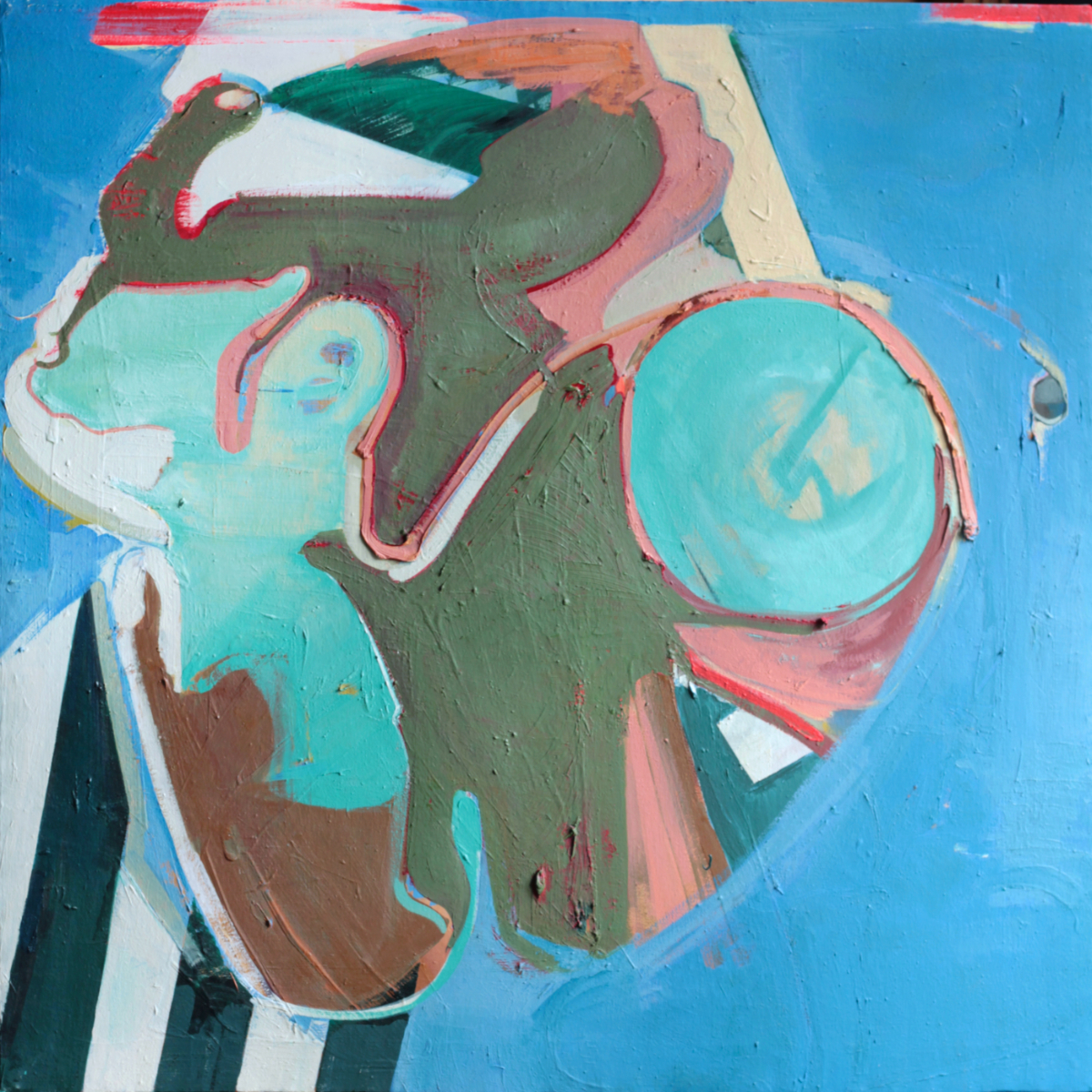 „Kallisto N° 2“ is part of an episode that began in 2021 as an enlargement experiment. The work is based on the SLIM painting „Flying Bear“. Tina Oelker initially created four variations of this composition in a larger format. While the other three works in the series underwent multiple revisions, „Kallisto N° 2“ remained closest to the original image and was left in its original state. It thus provides an interesting contrast to the other paintings in the series, which continued to evolve until January 2025.