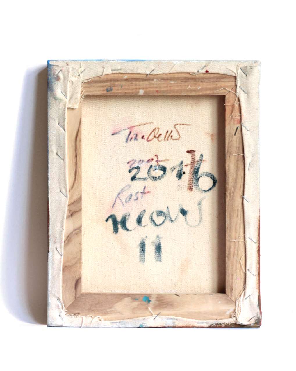 Das Werk entstand früh in der Recover‑Phase nach dem Projekt „Hafentor7“. Was sich unter dem heutigen abstrakten Ohrenwurm verbirgt, bleibt offen – das Geheimnis schwingt mit. Der grün lackierte Schattenfugenrahmen gehört seit 2023 zum Bild und ist im Preis inbegriffen.