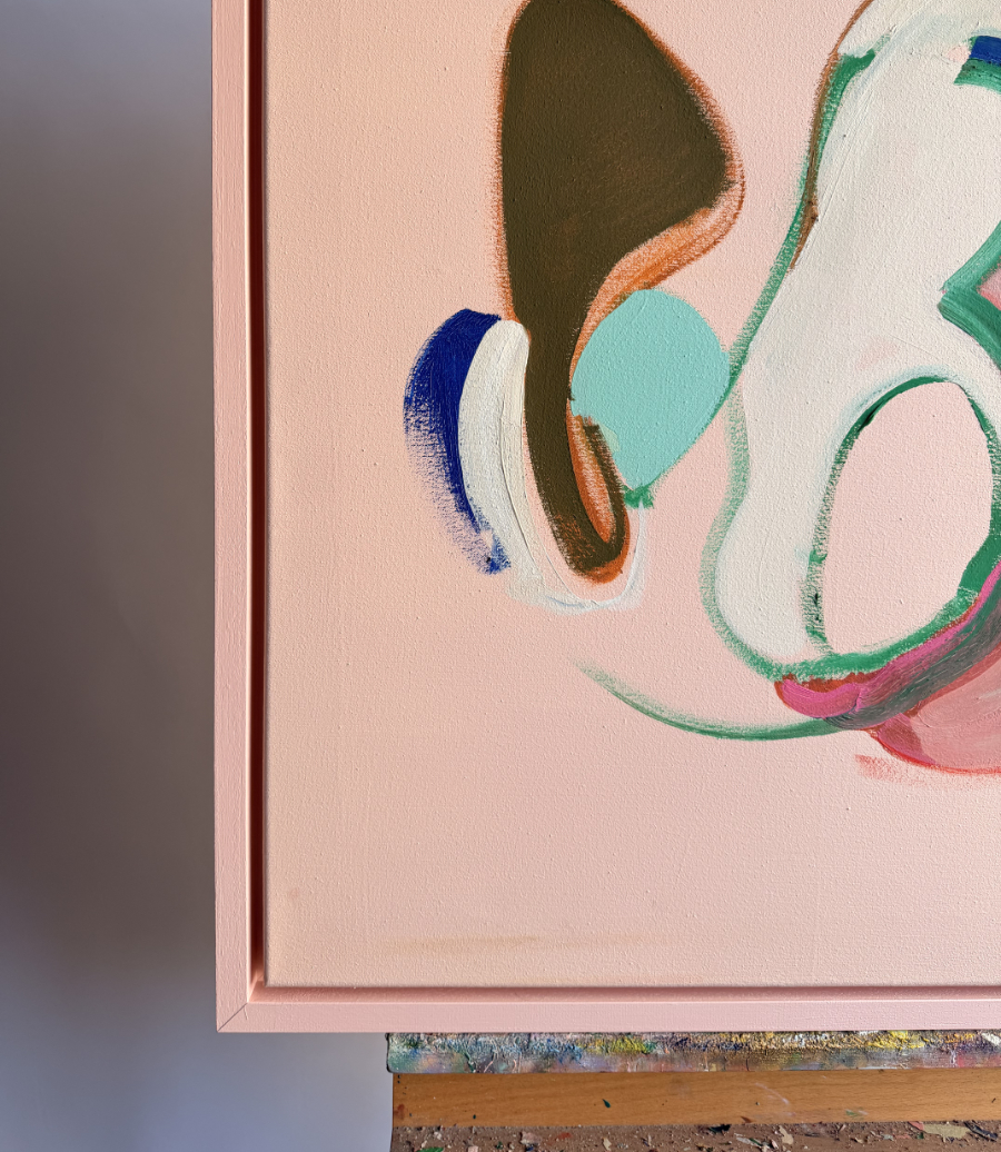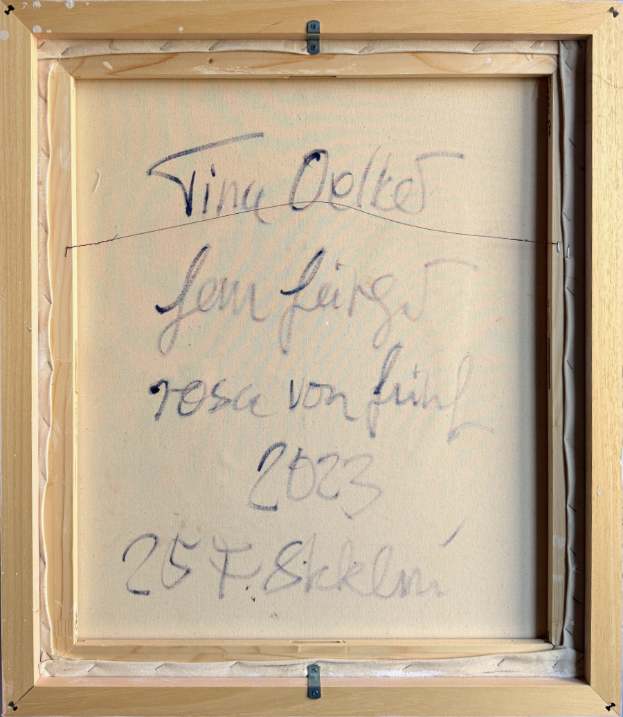 Fem Färger / Five Colours is a mini-series consisting of five works, each measuring 70 × 60 cm. The titles of the individual paintings refer to the hand-lacquered float frame, which is conceptually part of the work. Three paintings from this sequence – like many works from the overall 25 Colours Stockholm program – evolved over a longer period of time, while two works are deliberately minimal. Here, Tina consciously raises the question of whether minimalism can truly exist without a wealth of lived experience behind it.