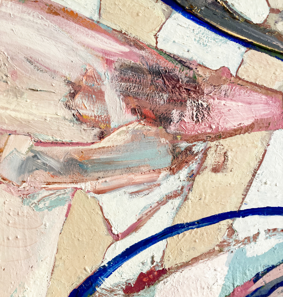 „Zu Tisch N° 6″ entstand 2006 als Teil eines Diptychons mit „Zu Tisch N° 7″. 2010 zunächst als Einheit geplant, wurden die Werke später getrennt. N° 6 wurde in das Programm „25 Colours Stockholm“ integriert, während N° 7 (ebenfalls übermalt) im Archiv bei den Jagdbildern blieb. Tina Oelker vollendete das Bild 2020 und behielt den Originaltitel – eine Verbindung zwischen den verschiedenen Schaffensphasen.
