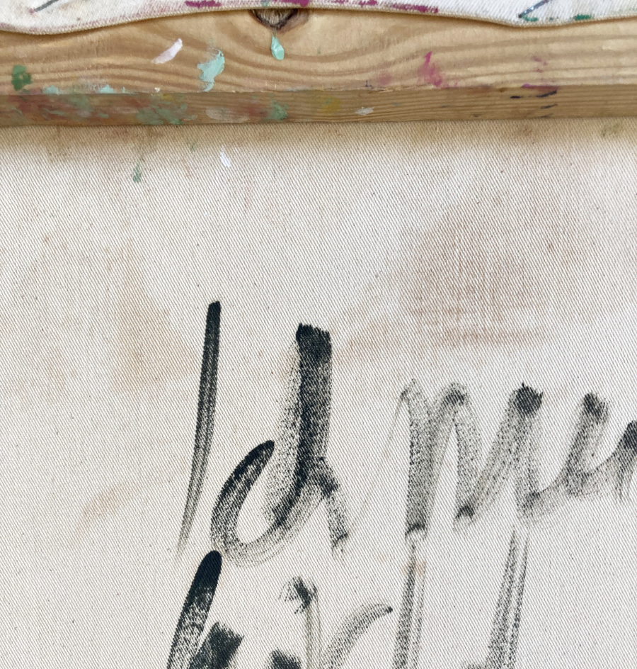 auf handgefertigtem Holzrahmen gespannt